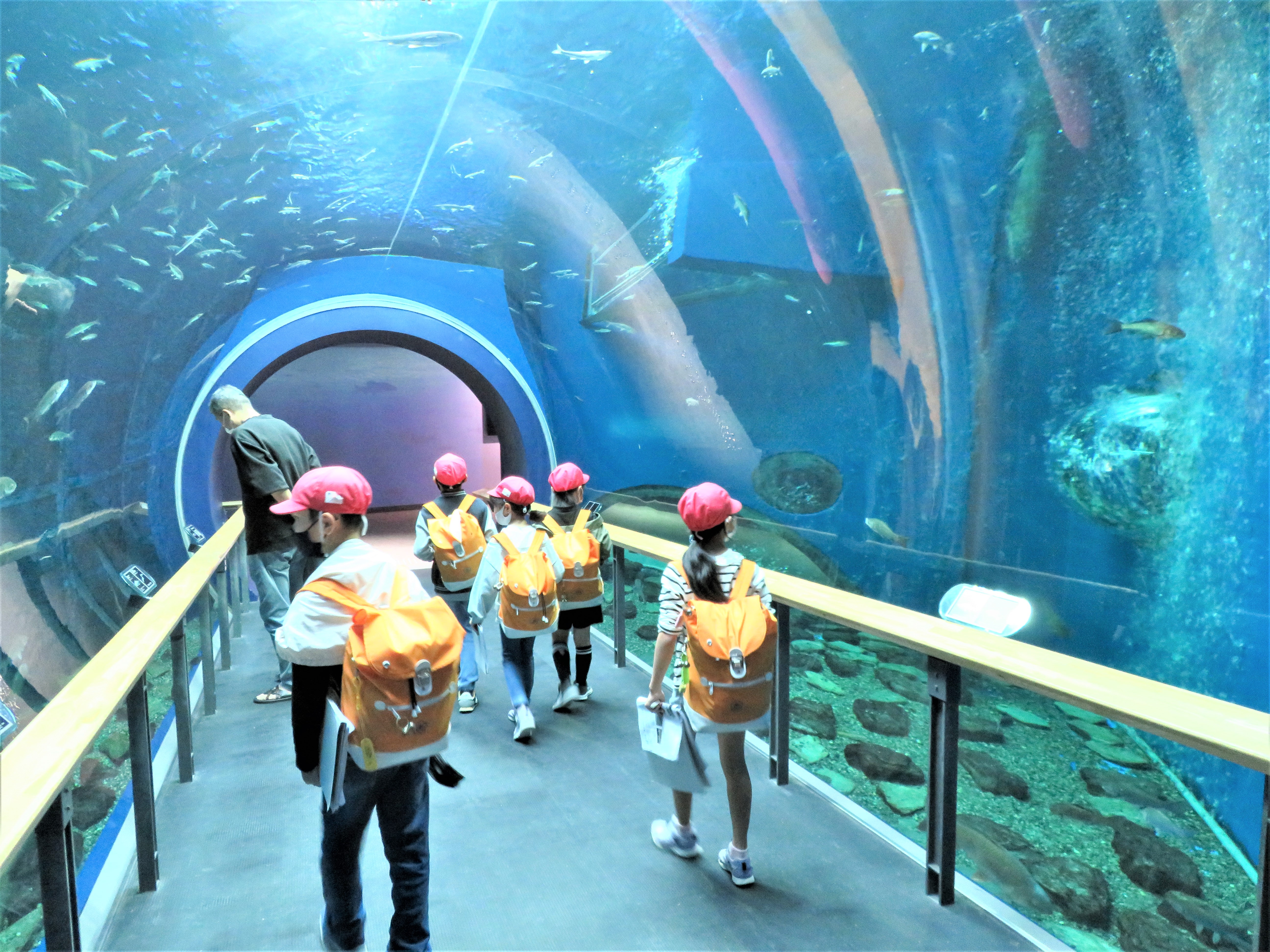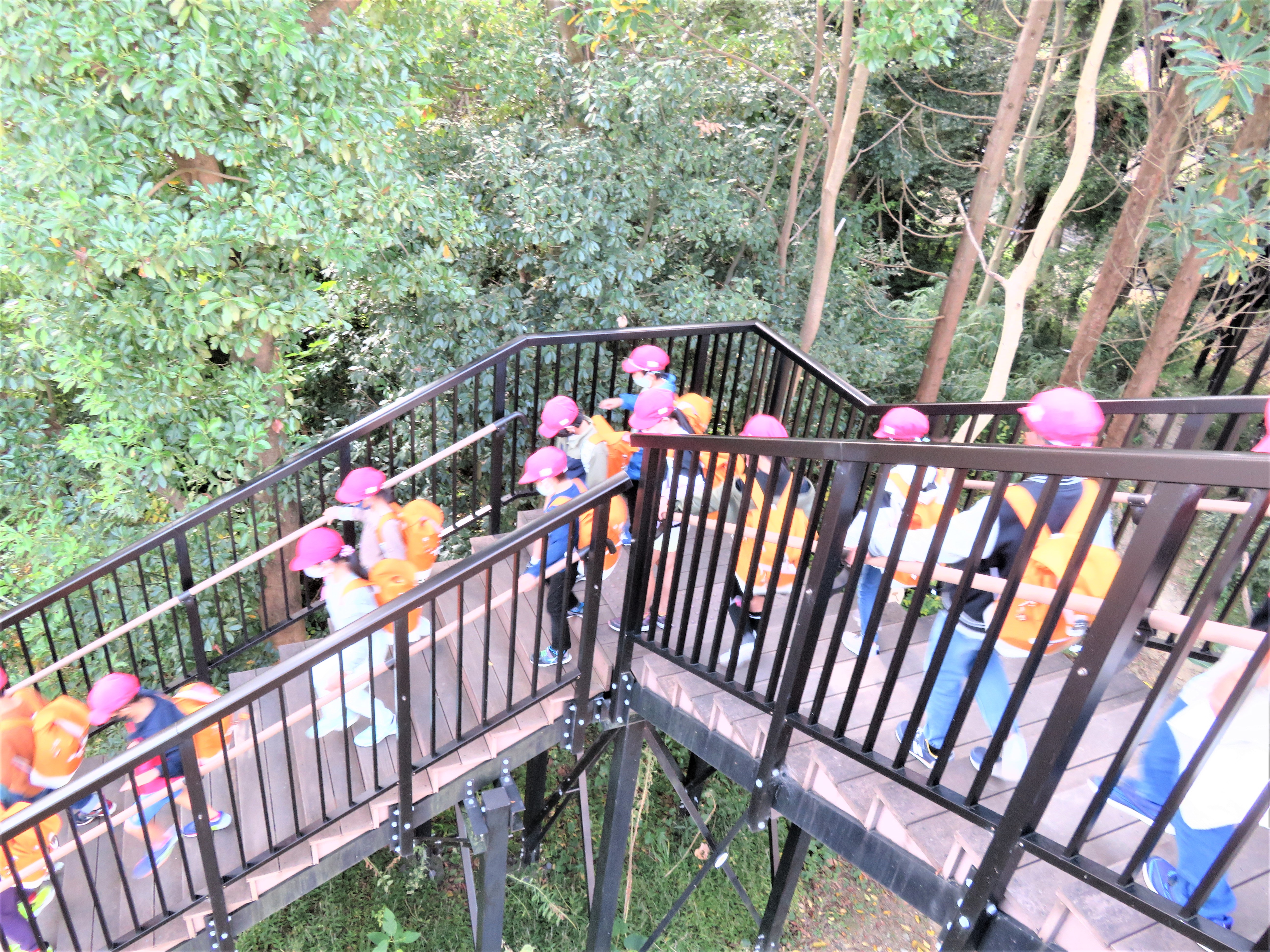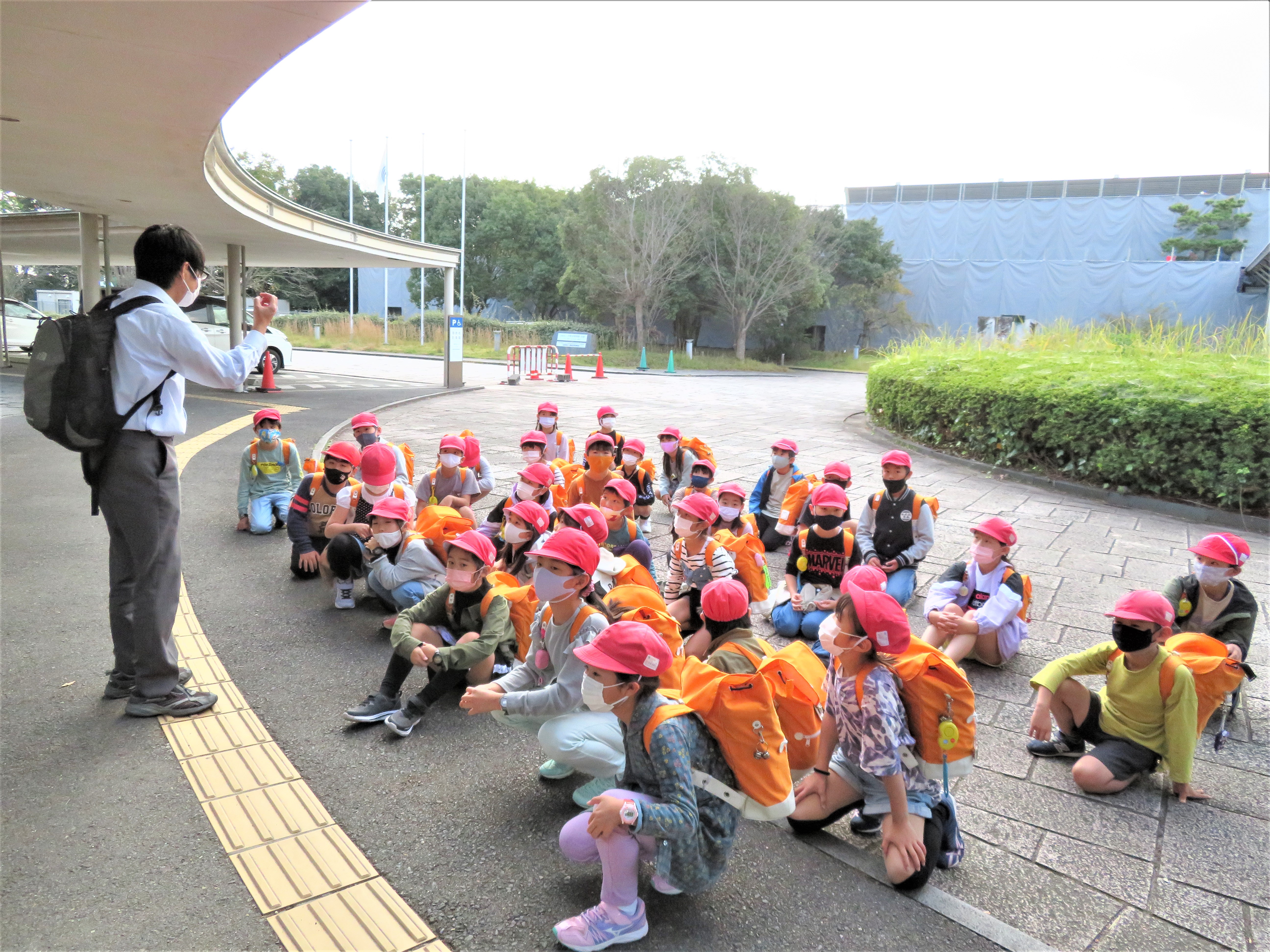 11月2日(火)に、3年生は校外学習として琵琶湖博物館に行きました。現地に到着後、3年生はすぐにお弁当タイムでした。良いお天気のもと、広々とした芝生広場でおいしいお弁当をいただきました。それから、琵琶湖博物館に入場しましたが、最初に、みんなで見学したのが新たに設置された樹冠トレイルです。高い木々の間を歩くことができる樹冠トレイルでは、木の上や木の実や鳥たちを見ることができました。途中で、美しいびわ湖や水鳥の見学もしました。
