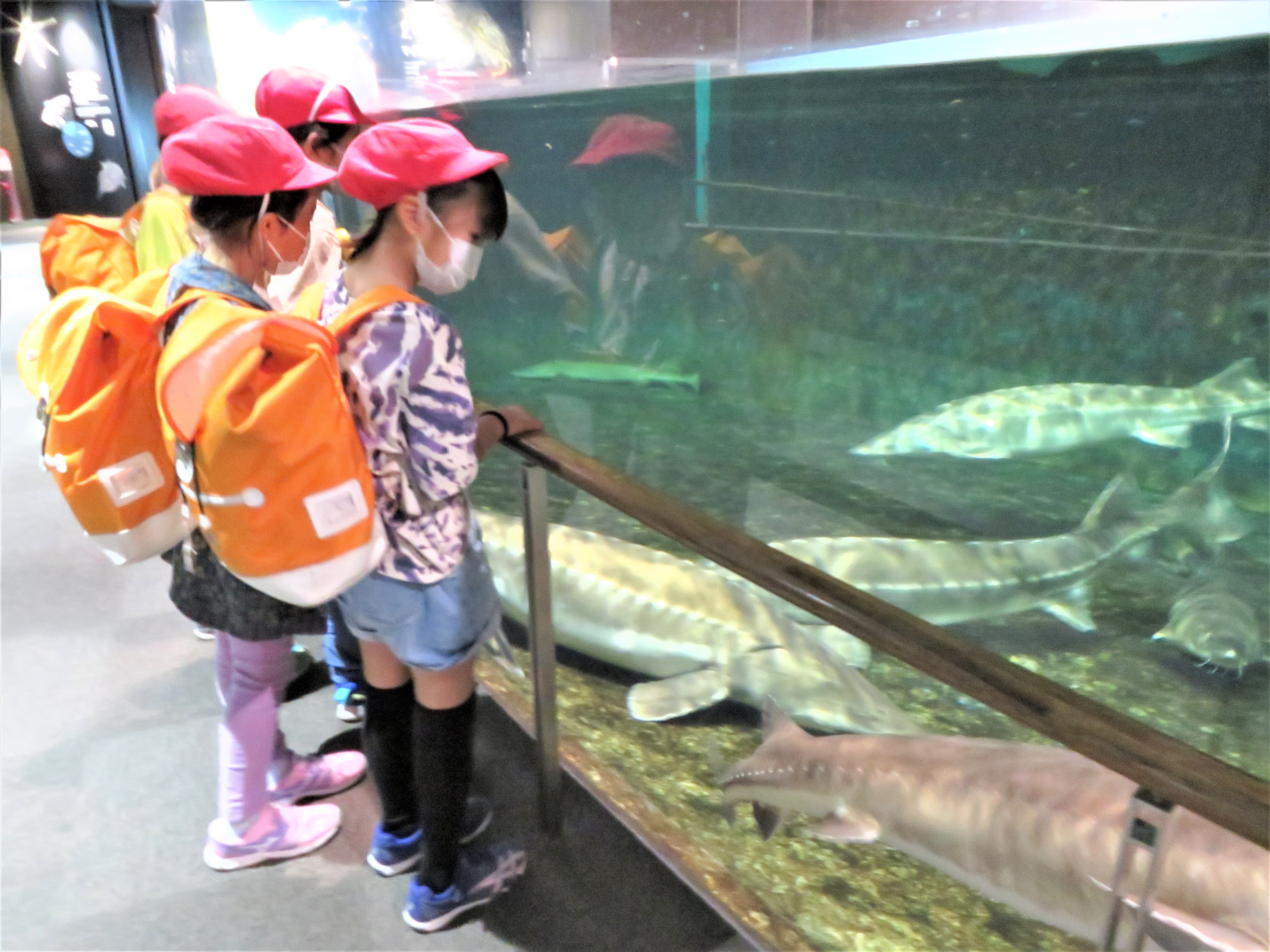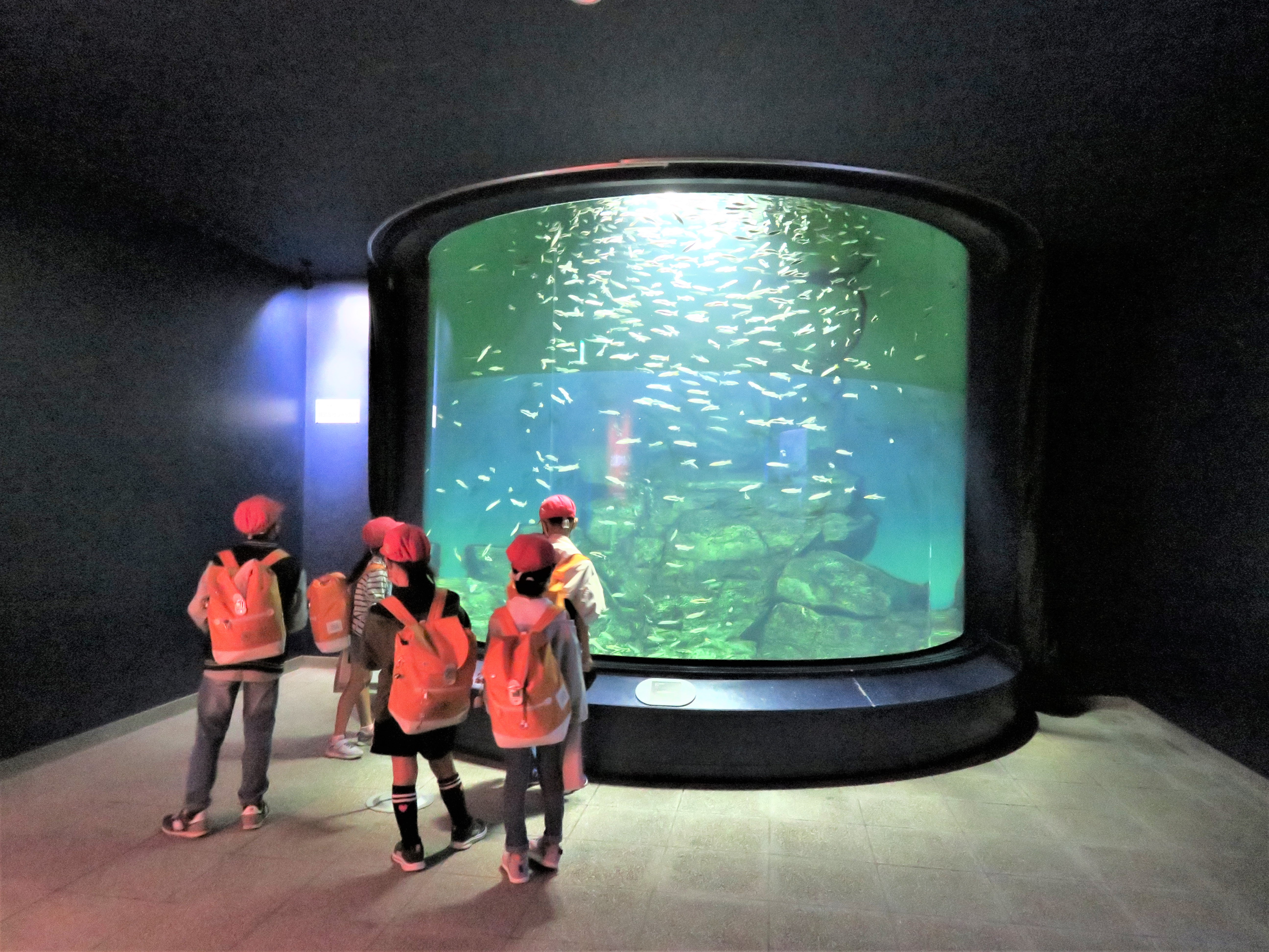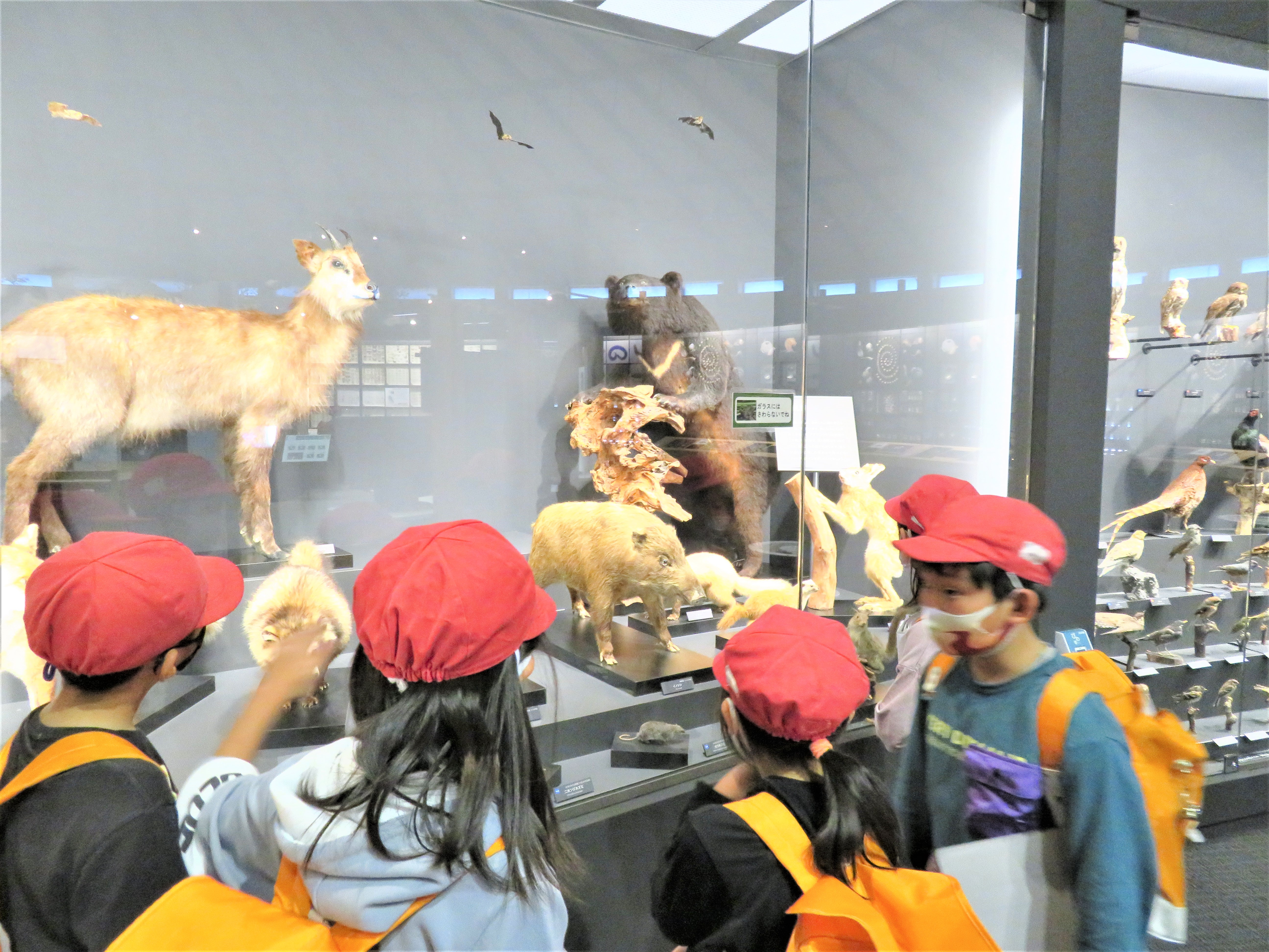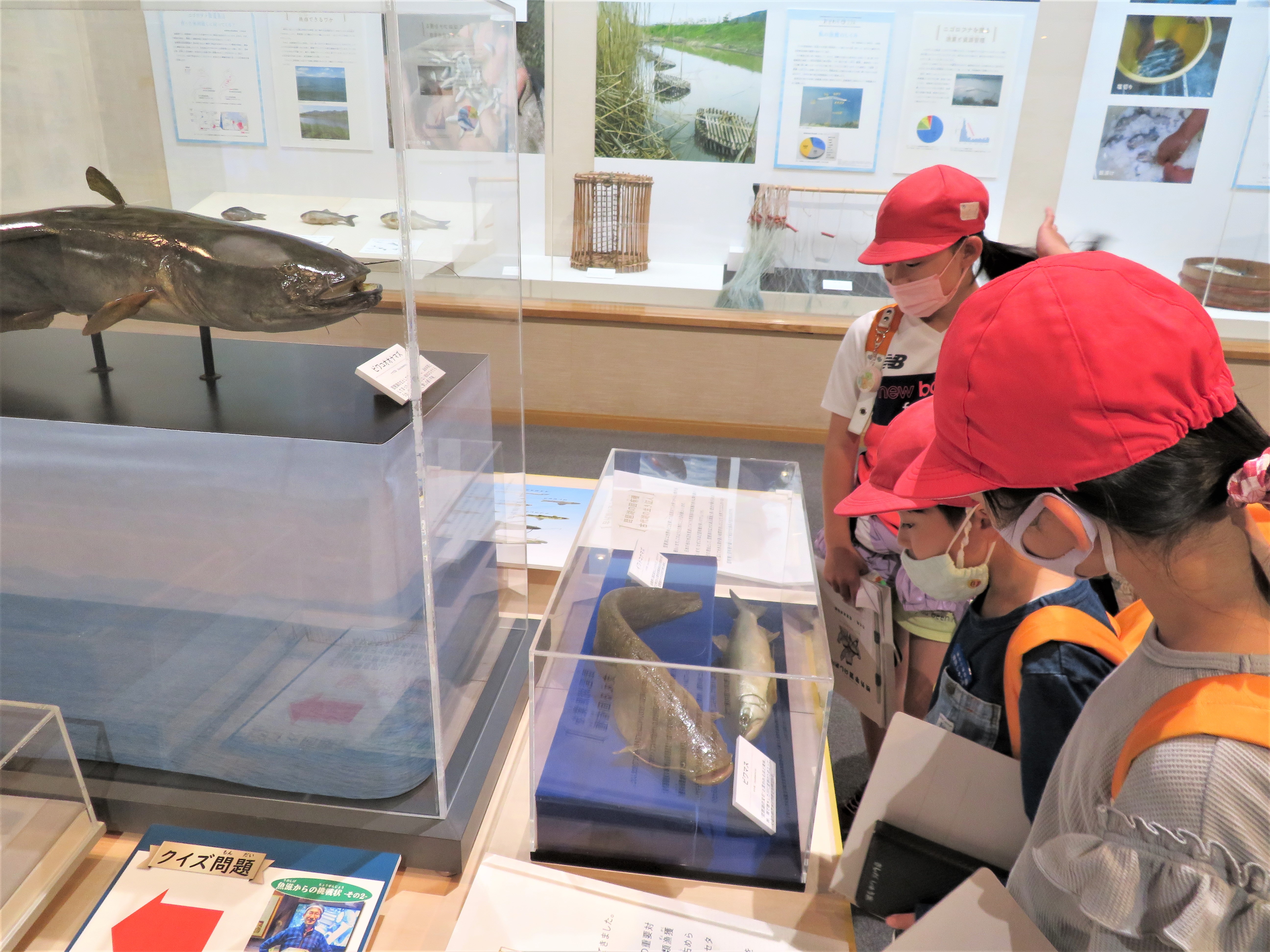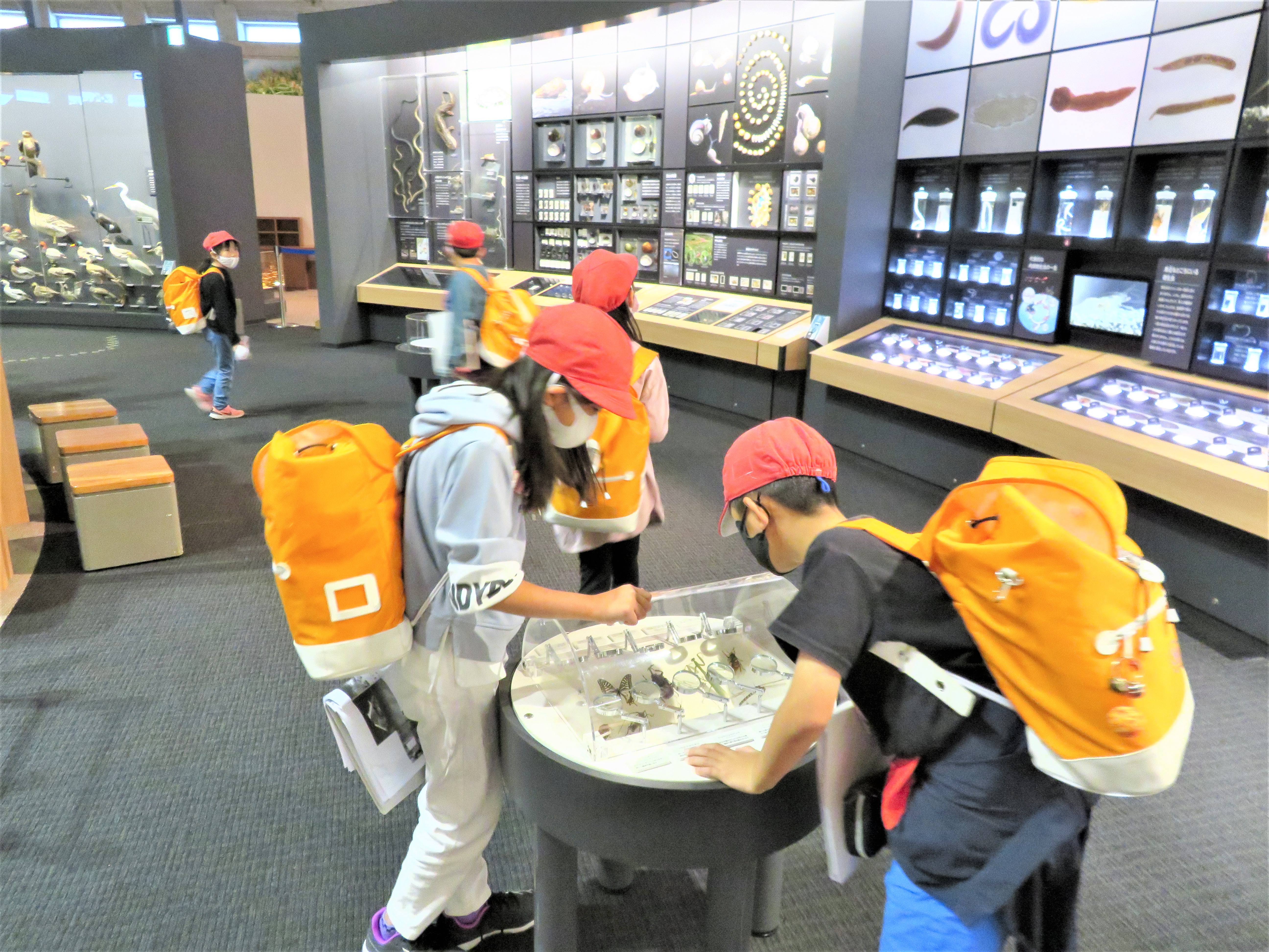 続いて、琵琶湖博物館の中の見学をしました。びわ湖や滋賀県の生物、歴史、そして、滋賀の人々の生活など、たくさんの資料をみて勉強することができました。しおりにある問題を一生懸命解こうとする姿も素晴らしかったです。
