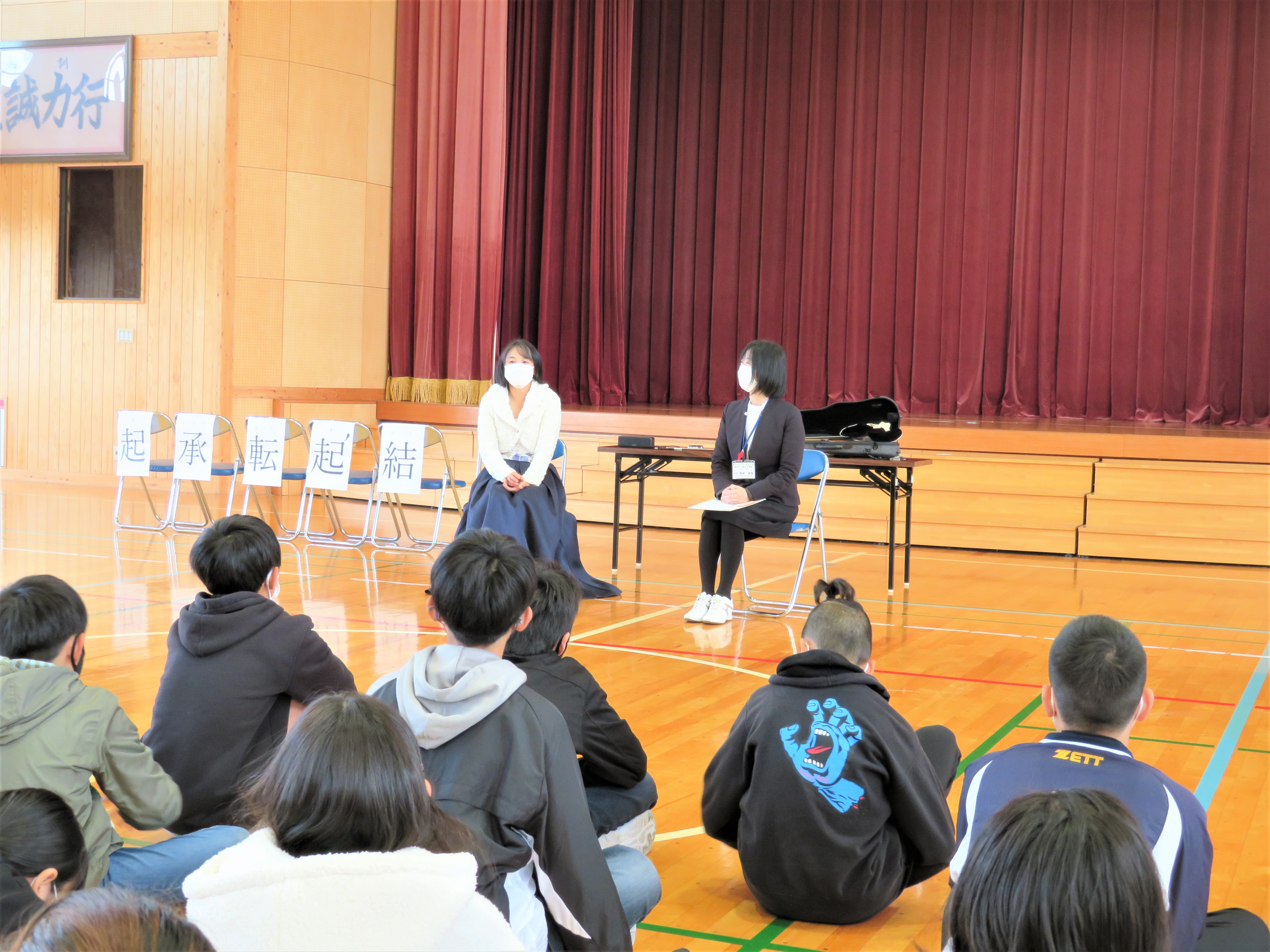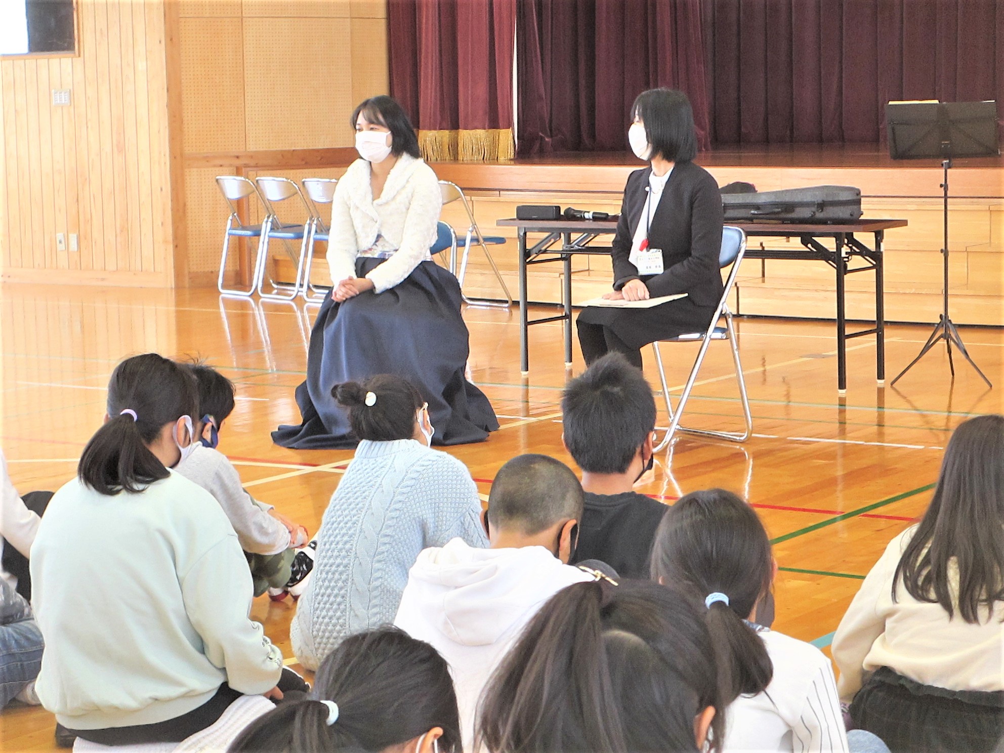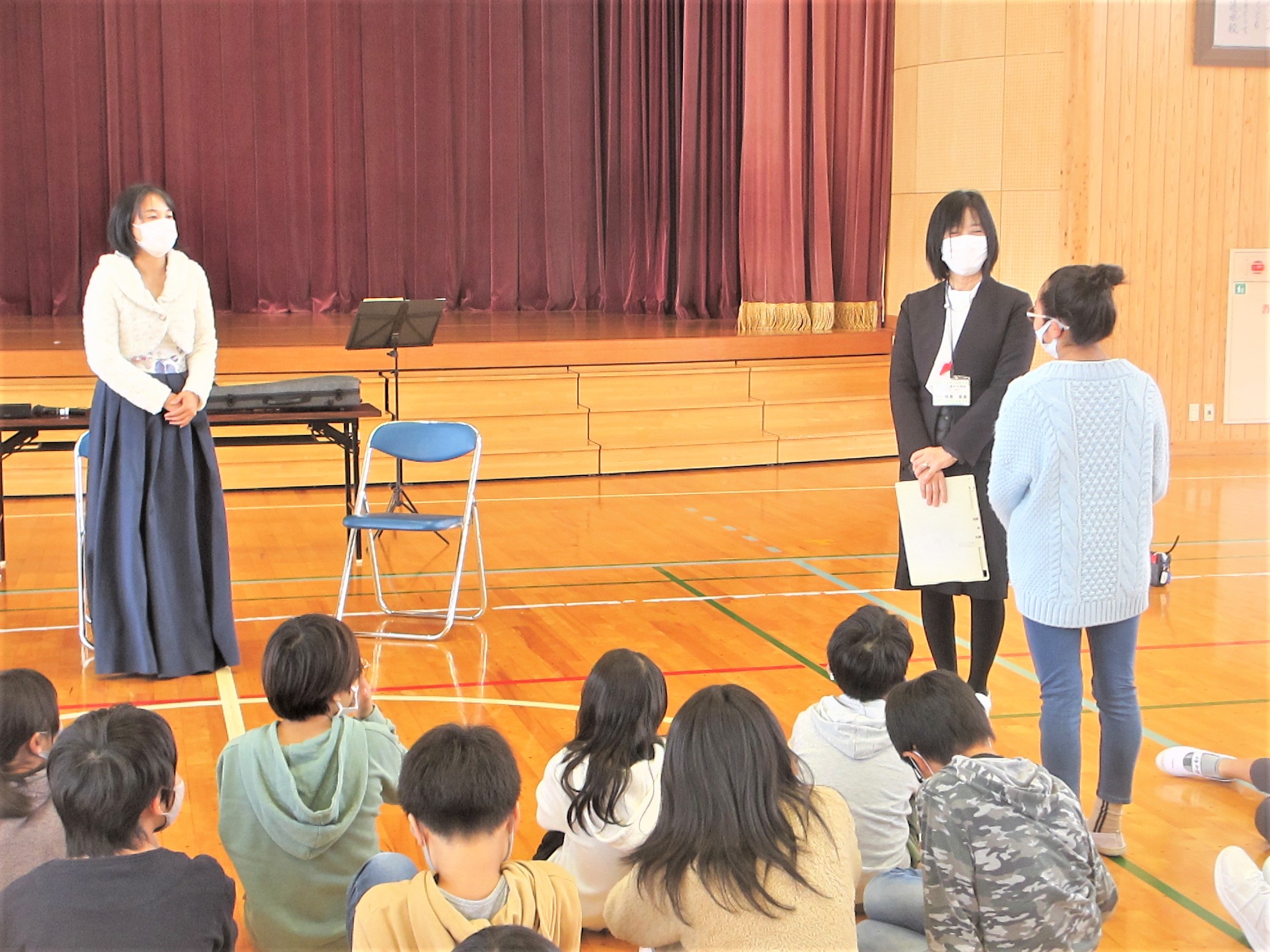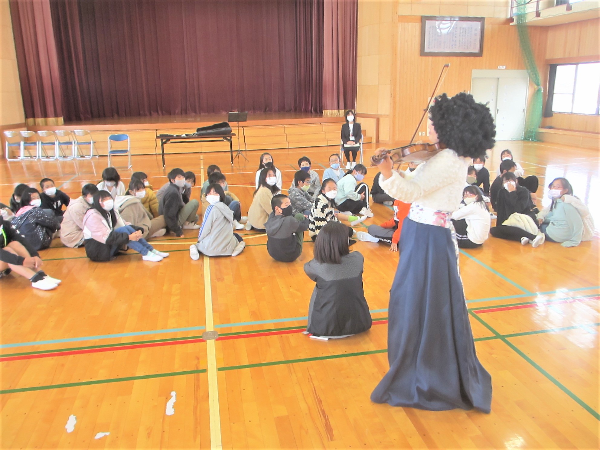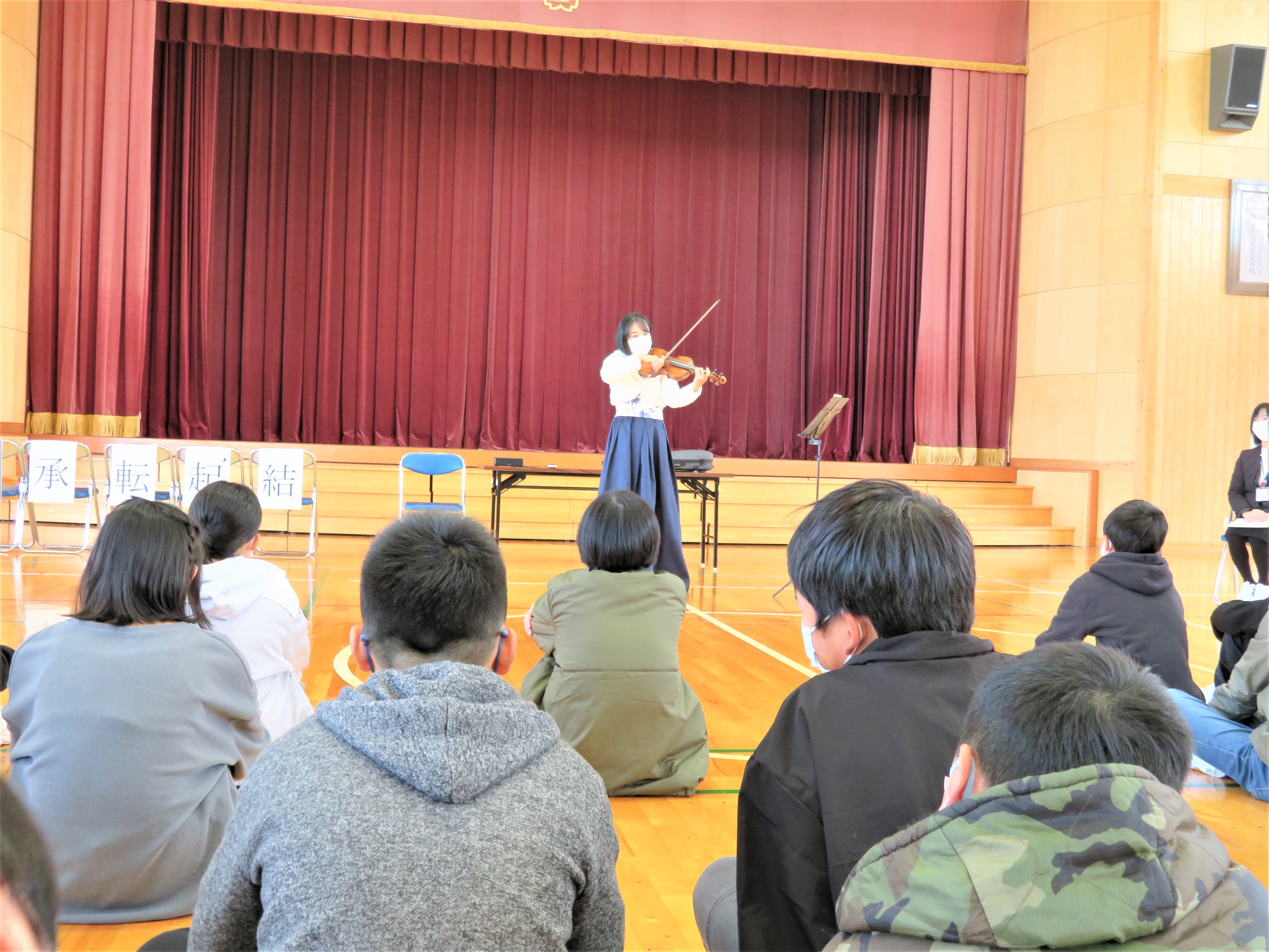 11月25日に、5・6年生の学年道徳がありました。2時間目は6年生、3時間目は5年生が、バイオリニストの中川香奈子さんから「よりよい生き方」について学びました。