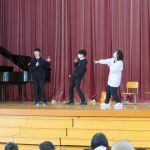 お話の後は、学校の近くの田んぼをお借りして、大豆の種まきをしました。指で種を入れる穴をあけて、その中に大豆の種をまきました。みんなが植えた大豆がすくすく育つのを楽しみにしています。