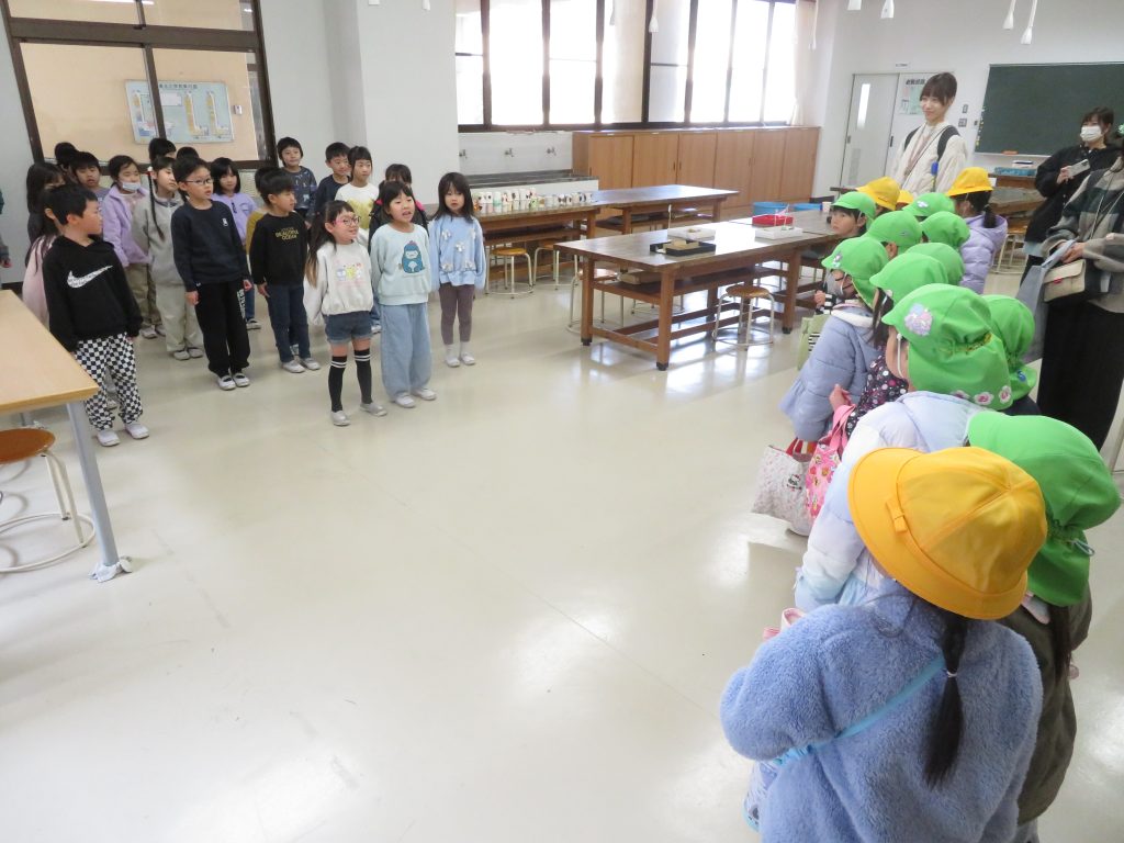 近隣の園のおともだちを招いて、交流会をしました。1年生は、生活科で作った「あきのしぜん」を使ったおもちゃや、鍵盤ハーモニカで「きらきらぼし」の演奏を披露しました。上手に司会進行したり、遊び方を一生懸命説明したりして、喜んでもらうことができました。
